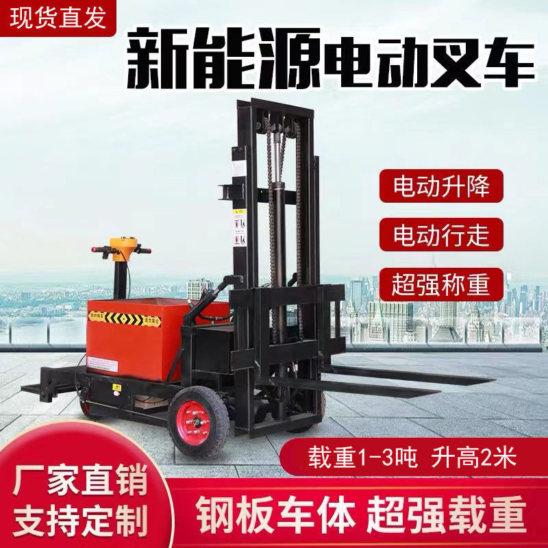 老河口市小型电动叉车1吨站驾式2吨液压升高铲车全自动仓储堆高车